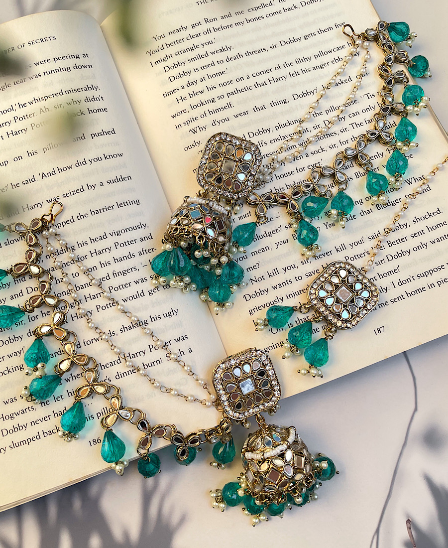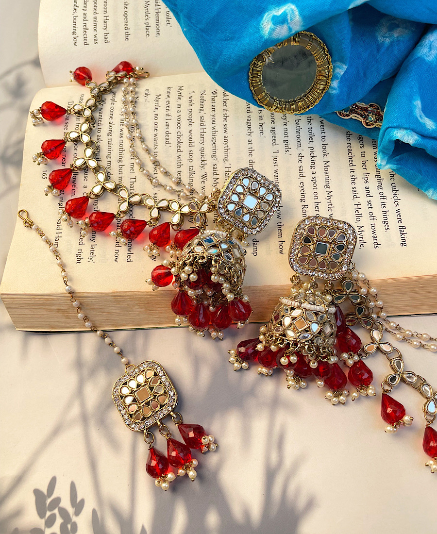 Bavree mirror Earrings & mangtika